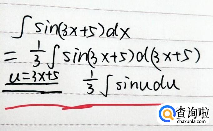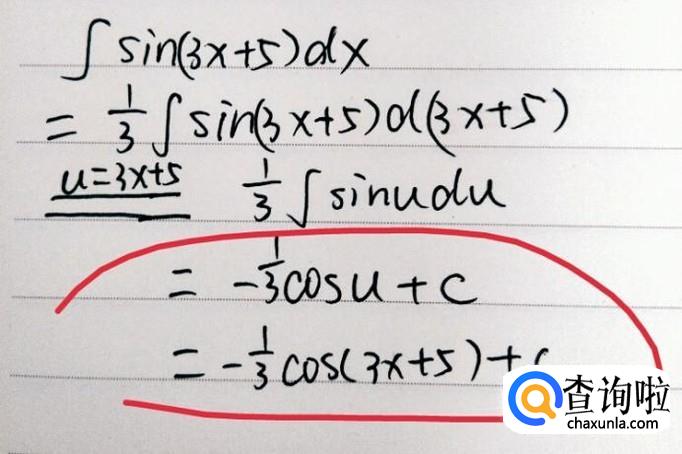 令u=3x+5,代入上式,此处利用换元法。