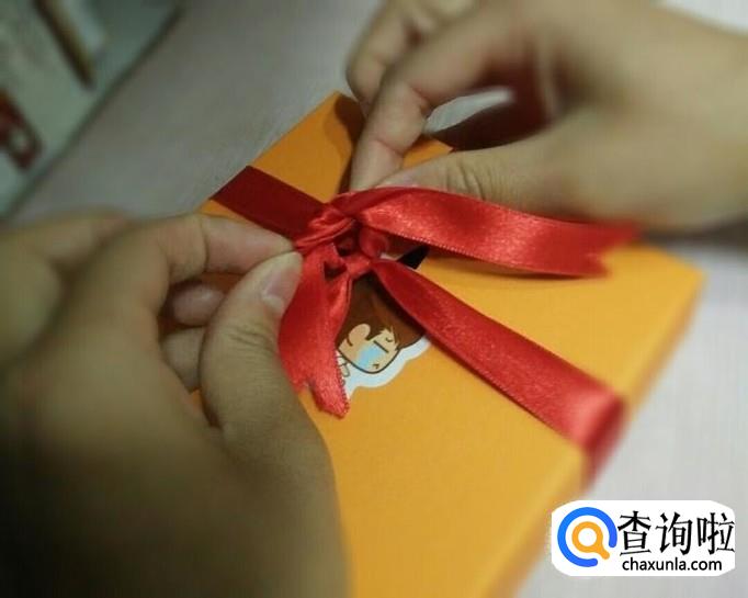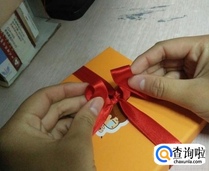 把蝴蝶结整理一下,礼物盒就包装好了。