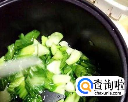 2:电饭煲加热,放入少许油,油热后将青菜放入锅中翻炒