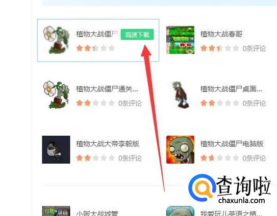 进入之后,找到植物大战僵尸的游戏,点击“高速下载”,如图所示。
