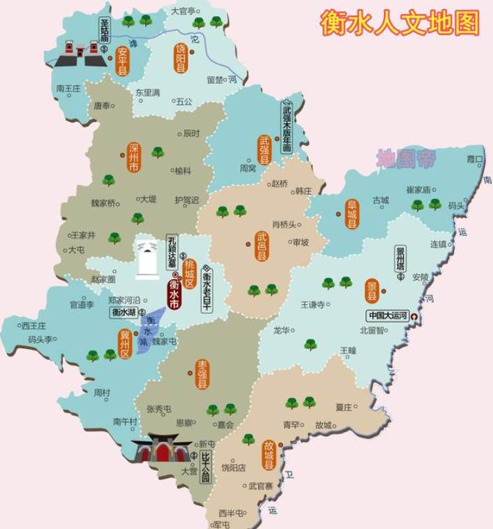 截至2020年末,衡水市辖2个市辖区,1个县级市,8个县。分别是:桃城区、桃城区、深州市、枣强县、武邑县、武强县、饶阳县、安平县、故城县、景县、阜城县。
