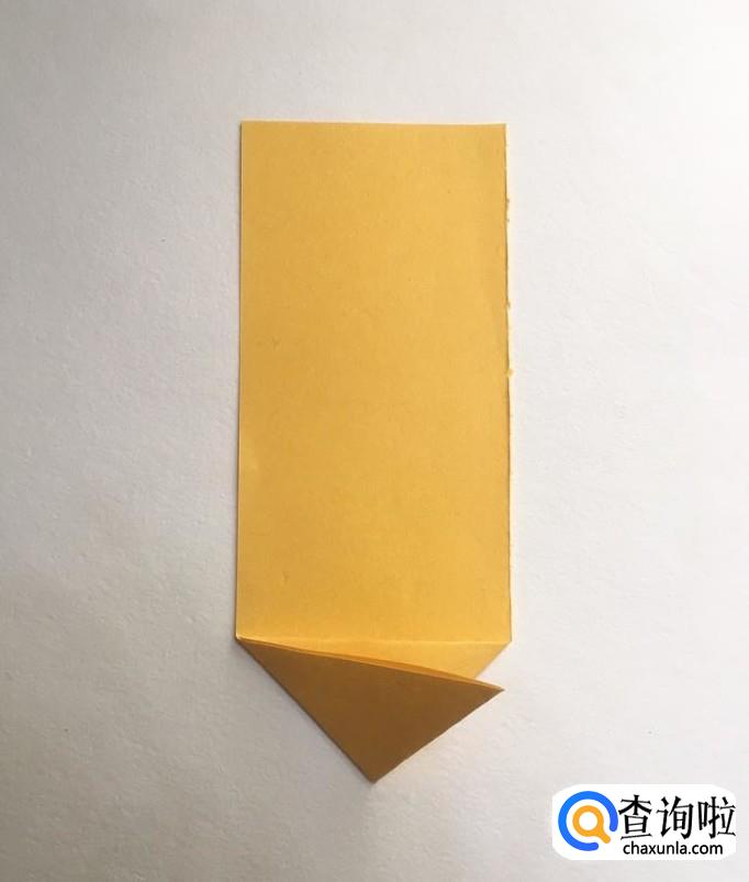 准备一张长方形纸条,将右下方的角向左折。