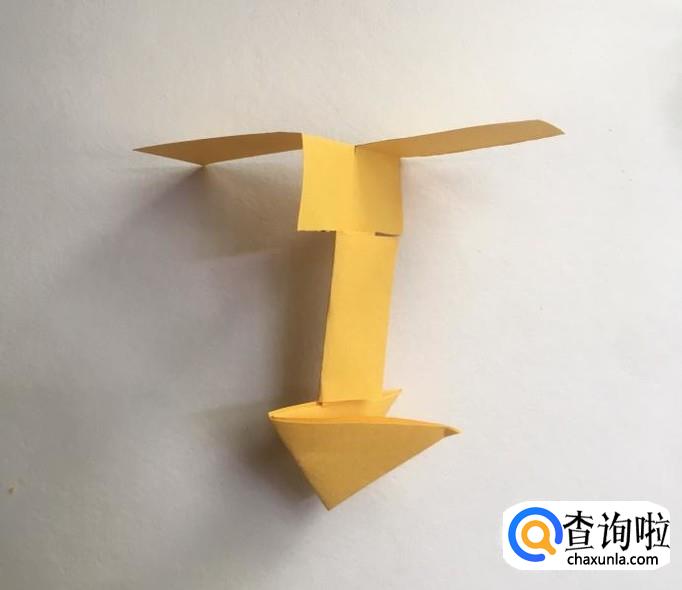 最后,将顶部分别向前和向后折,折到水平位置,这样竹蜻蜓就做好了。