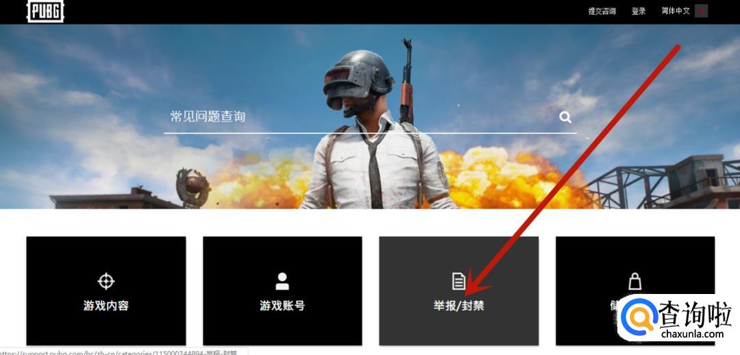 首先我们打开蓝洞官网,在页面点击举报封禁,进入相关页面。如图所示。