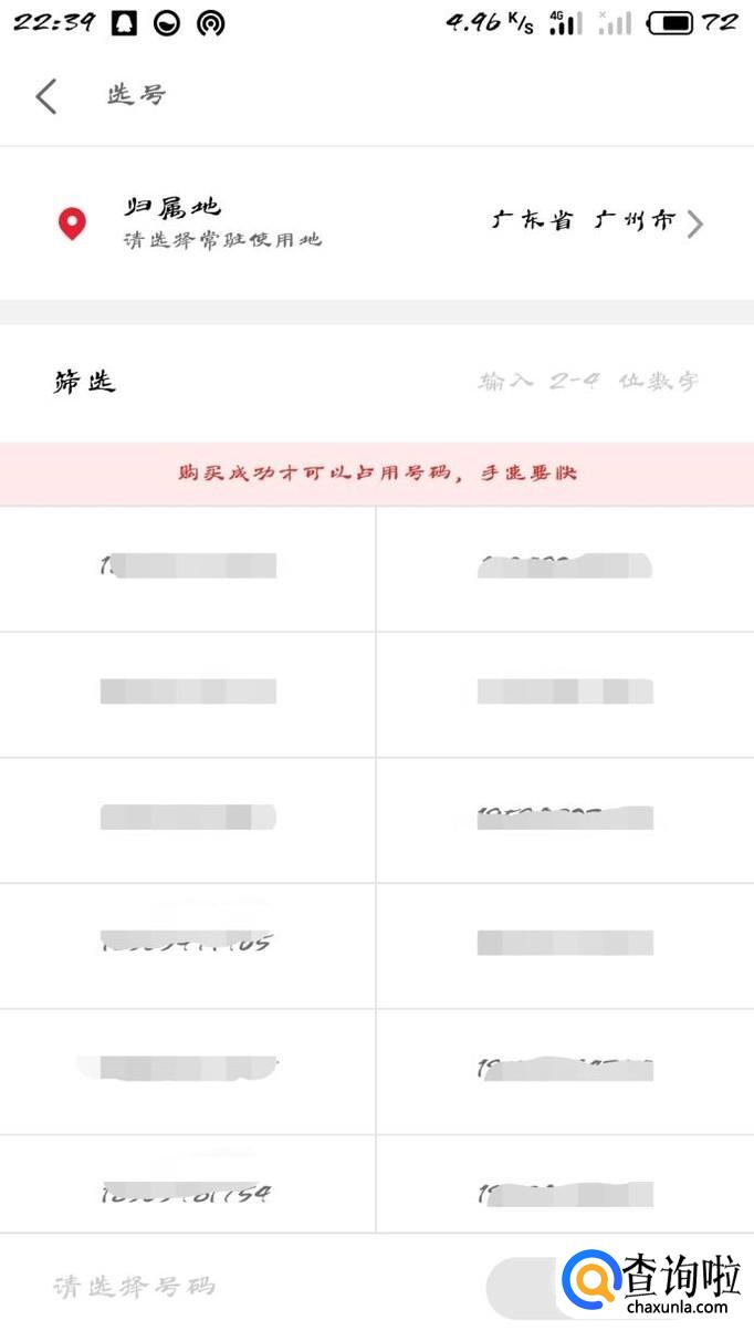 选好自己的归属地,然后选择自己喜欢的号码,就可以进行下一步操作了。