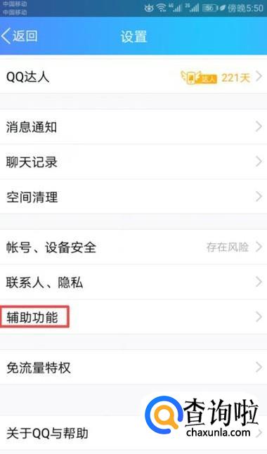 弹出的界面,我们点击辅助功能;