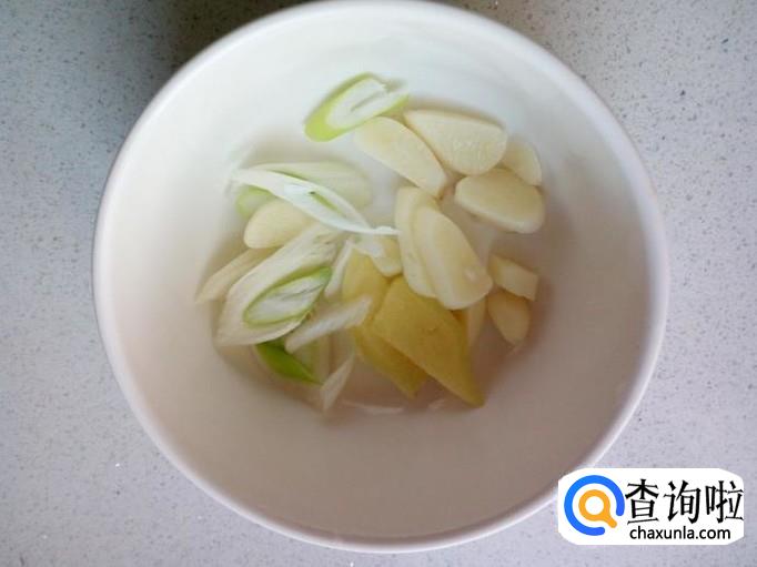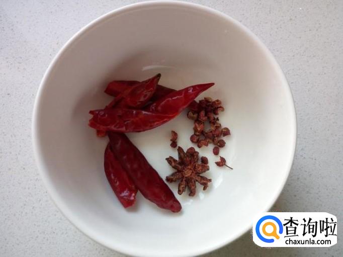 切好葱,姜,蒜,准备好花椒,八角,红干椒,备用。