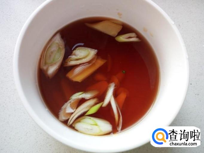 碗里放入盐,白糖,醋,料酒,酱油,再放入切好的葱,姜,蒜,兑水,调和成料汁(调料投放的不要太多,腌制鱼的时候,已经放过调料)。