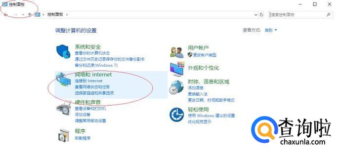 唤出"控制面板"程序窗口,如图所示。点击"网络和Internet"图标,用户可以根据自己的喜好和需要对系统进行设置。