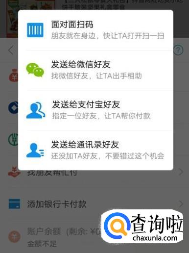进入之后,选择“找朋友帮忙付”,进入下一页面,如图所示。