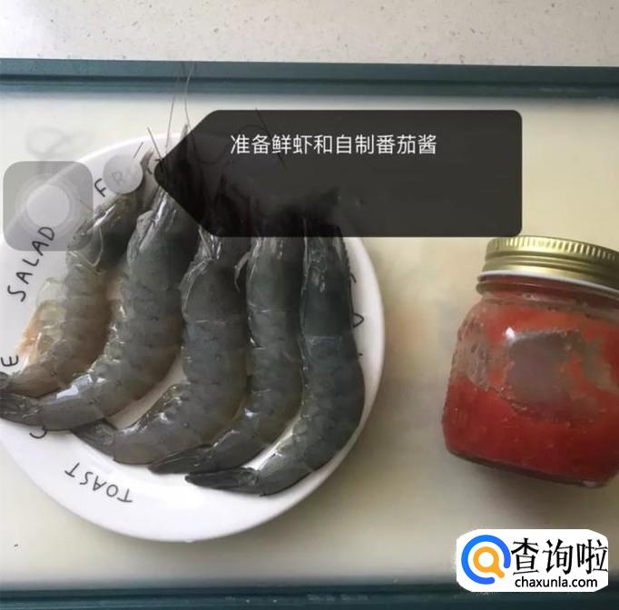 首先准备好鲜虾和自制的番茄酱,如下图所示。小贴士如果没有自制的番茄酱,小编建议大家最好选择使用超市里卖的那种价格会比较贵的番茄酱会比较好。