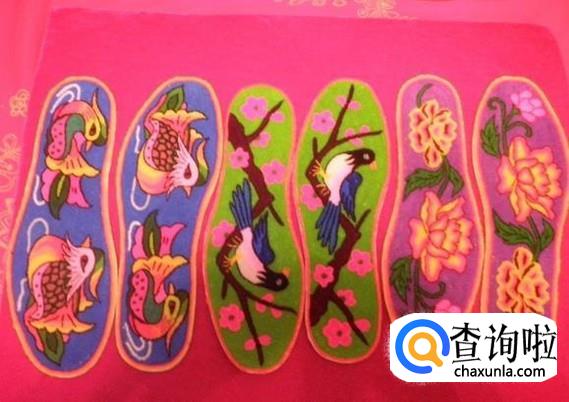 一般来说,手工鞋垫的刺绣方法大概分为三种。第一种是剪纸贴花绣法。顾名思义,就是将要绣的图案画在纸上,再贴在鞋垫上,然后用针线按照图纸来绣。