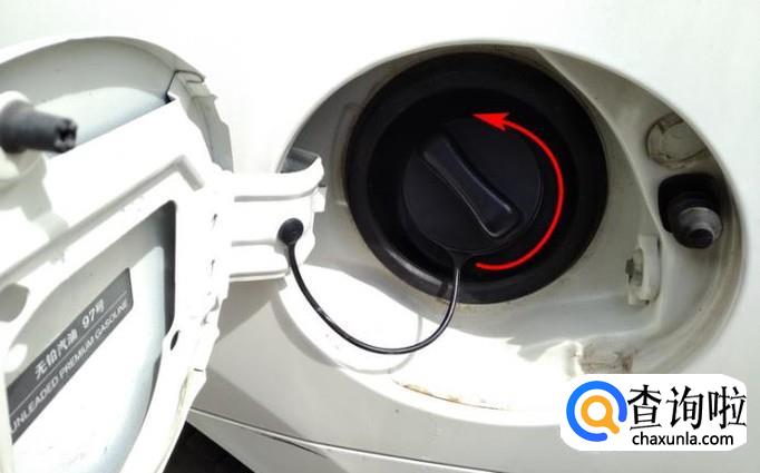 油箱盖开启是按下盖子右侧区域,盖子就会弹起;