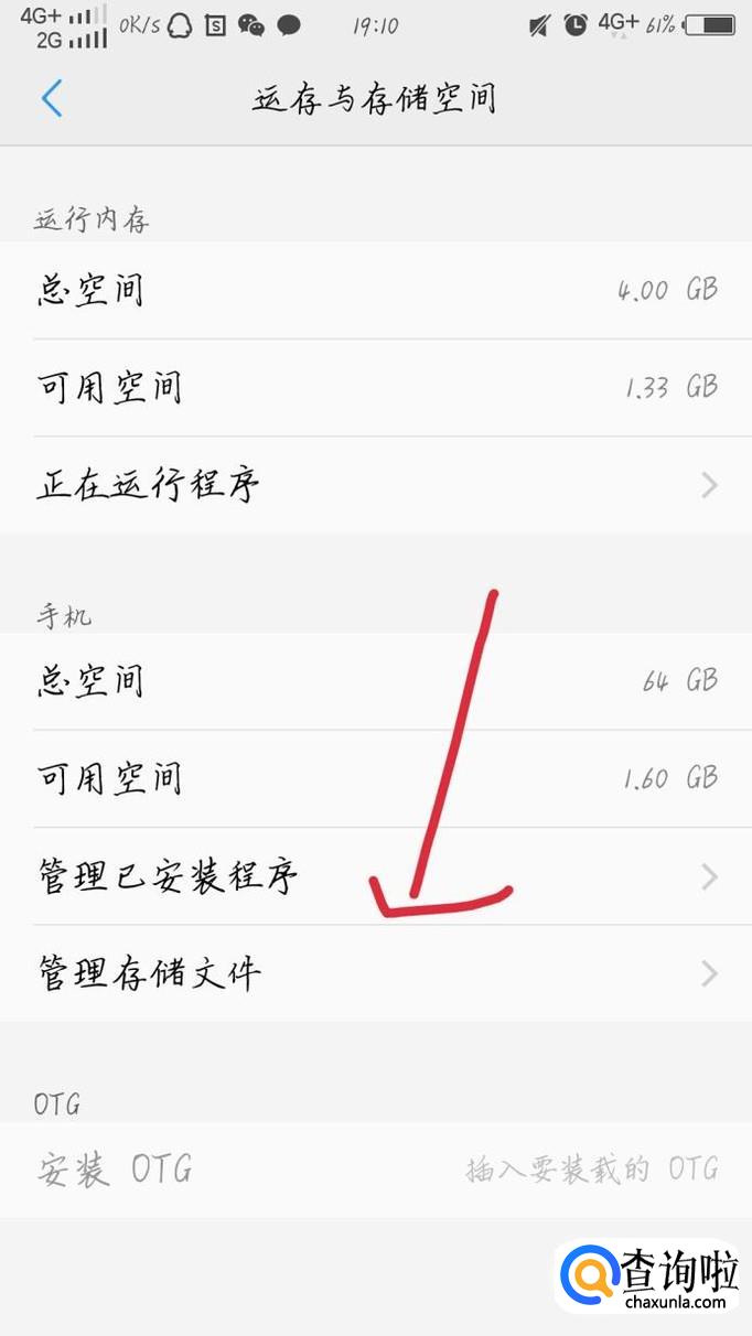 点击管理已安装程序,如下图1箭头所示。会弹出一个新的界面,如图2所示。你会看到所有你手机已经安装的程序