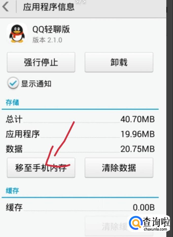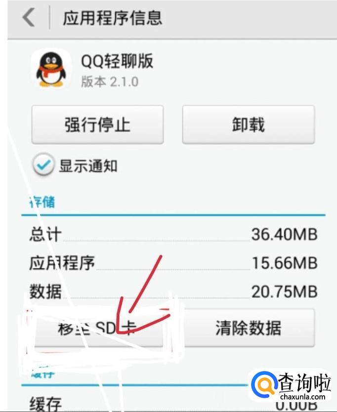 点击你想要移动到内存卡里的程序。你会进入一个新的界面,如下图1所示。点击移至SD卡,如下图2箭头所示。这样就已经移动到SD卡了。这个时候看到移动到手机内存。