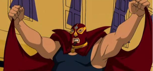 牛战士出自《成龙历险记》,是墨西哥的摔跤手,力气很大。因为觉得摘下面具是奇耻大辱,所以经常说“牛战士从来不会摘下他的面具。”虽然嘴上这样说,但实际他摘过面具,而且还是三次!