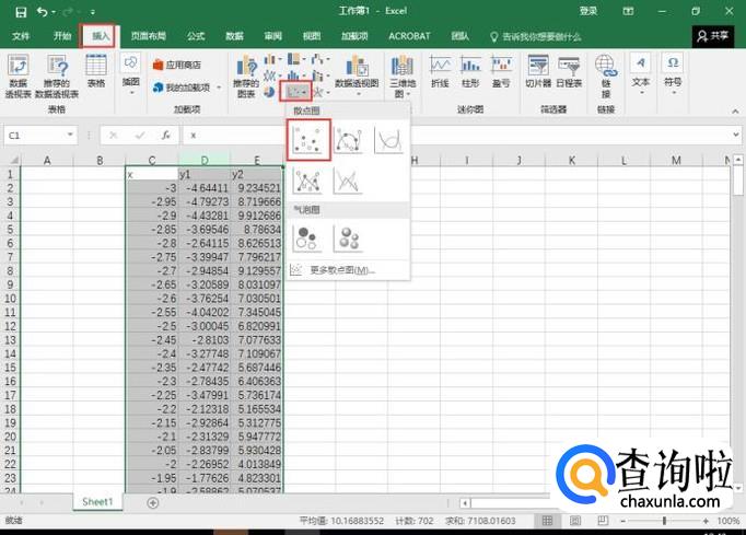 切换到"插入"视图,选择散点图中的第一种类型,如图所示。