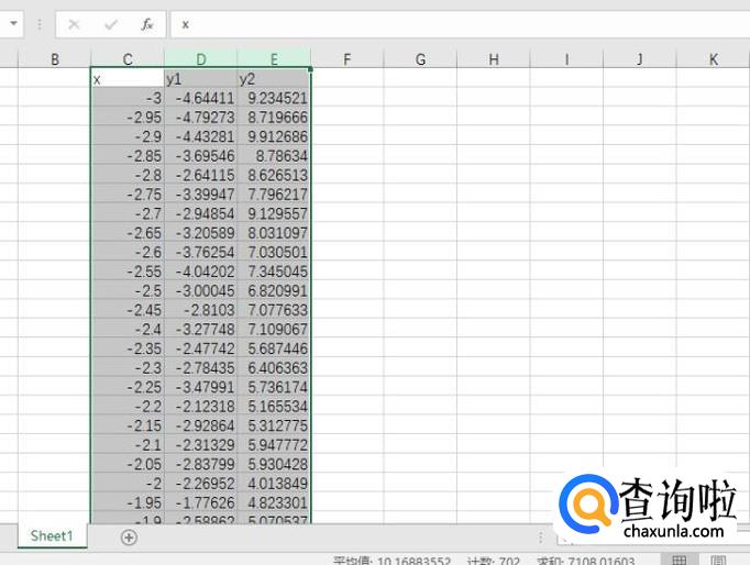 首先,我们以x为横坐标,分别以y1和y2为纵坐标,绘制出散点图。首先选中这3列数据,如下所示。