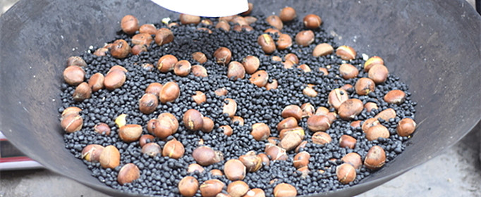 炒板栗沙的选择,有铁沙、河沙、石英沙,这么几种。这几种都可以用,不过目前大部分都用石英沙。然后,沙子建议选择大一些的颗粒,经过多次翻炒,沙子便磨得光滑没有棱角。