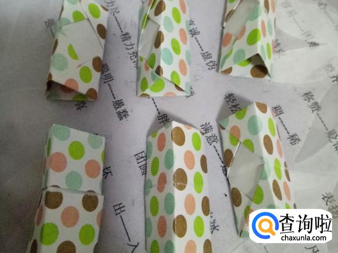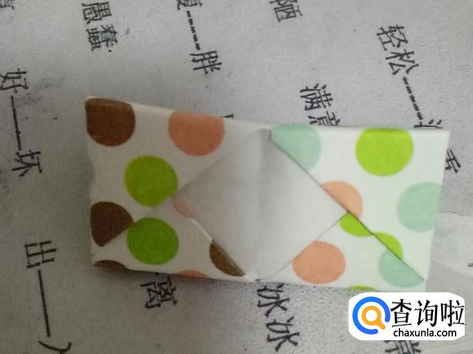 翻过去,两边向中间折,其中一个边插到另一边,折出一个立体的三角体