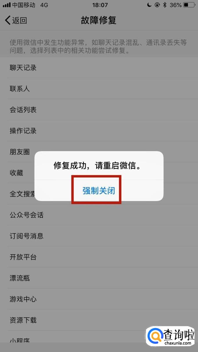 最后点击强制关闭并重新登陆微信,我们就会发现我们之前所删除的一些聊天记录就会回来了。