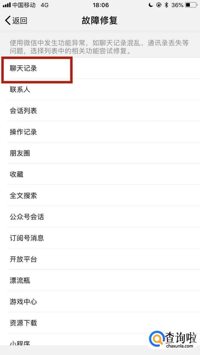 然后点击聊天记录,如下图所示。