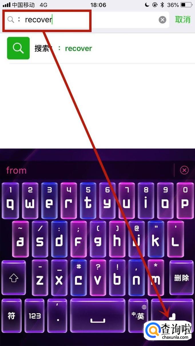 接着输入指令“:recover”并点击搜索,如下图所示。