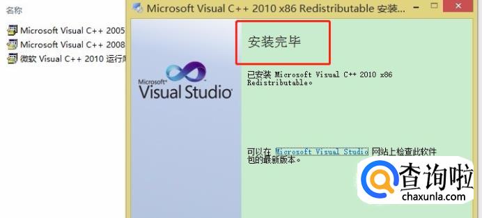 或者从微软官网下载上述运行库,完成安装。