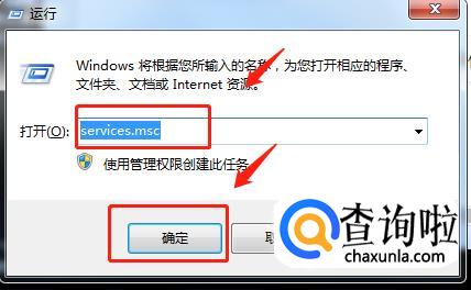 在打开的运行框中输入“services.msc”在敲击【回车键】或点击【确定】快速打开本地服务管理窗口。