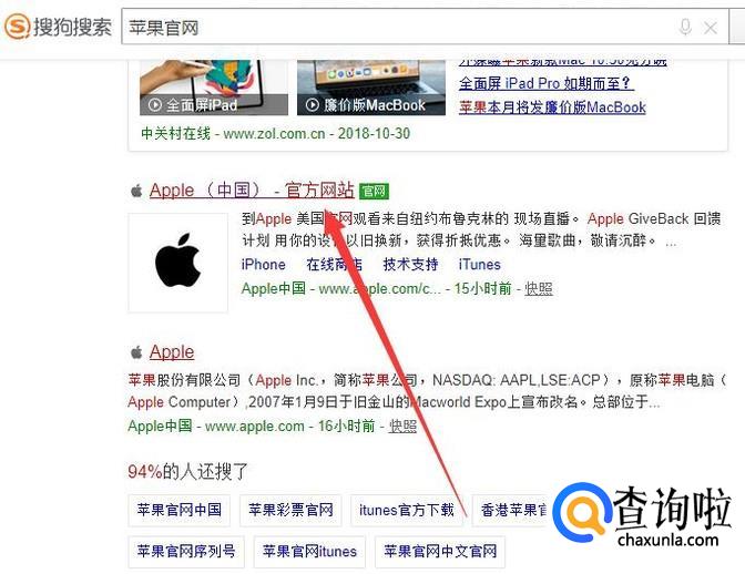进入之后搜索“苹果官网”,点击并进入,如图所示。