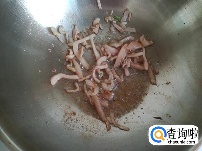 炒锅里放入花生油,等油有六成熟时,把肉丝入锅炒至变色。