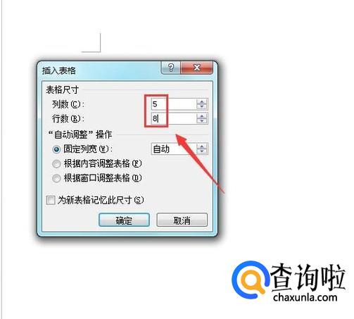 点击插入表格选项在弹出的对话框内设置表格的行数和列数如图所示: