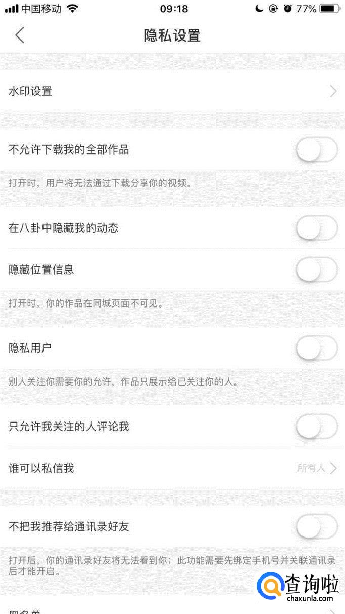 接着点击开启私密用户开关,如下图所示。