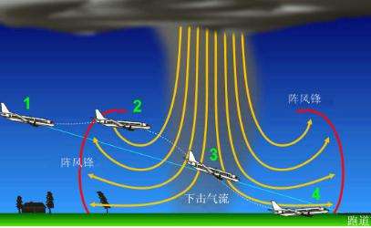 当飞机临近降落时,一旦遇到下击暴流,在逆风作用下,机头抬起(如上图中的2阶段),会拉升减速,让原本就进入减速降落状态中的飞机进一步减速,这样飞机可能出现失速;