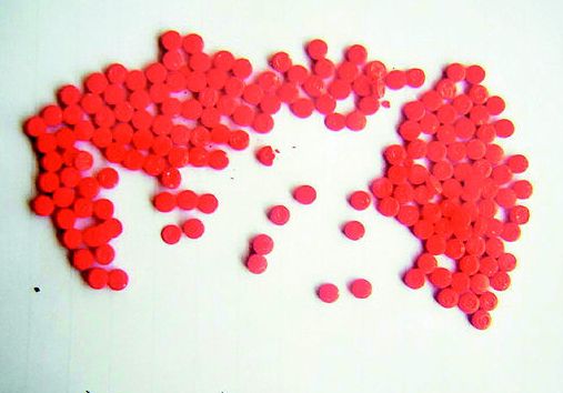 麻古的外观多为圆形、药片状,黄连素药片大小,与摇头丸相似,通常呈玫瑰红、橘红、苹果绿等色,添加色素香料呈不同颜色和香味,上面印有“R”、“WY”、“66”、“888”等标记。