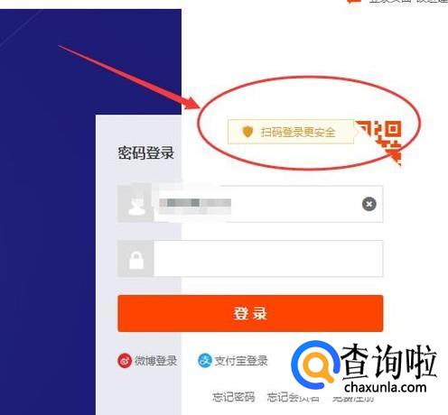 然后点击【扫码登陆更安全】,如下图所示: