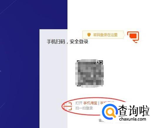 然后出示【手机扫码】,打开手机淘宝,扫一扫即可,如下图所示:
