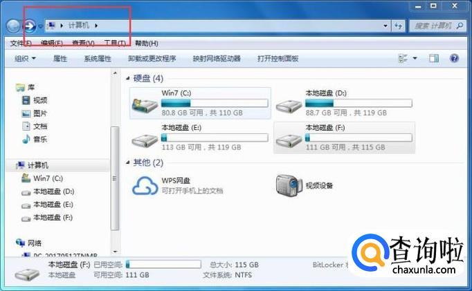 打开【计算机】,也就是【我的电脑】,如下图所示: