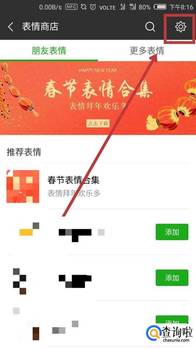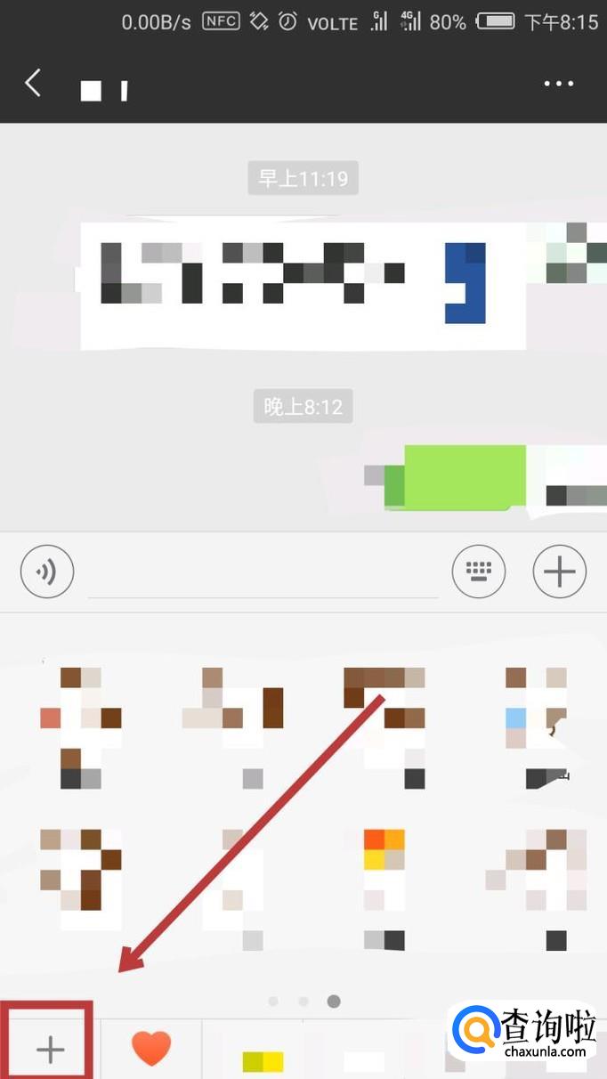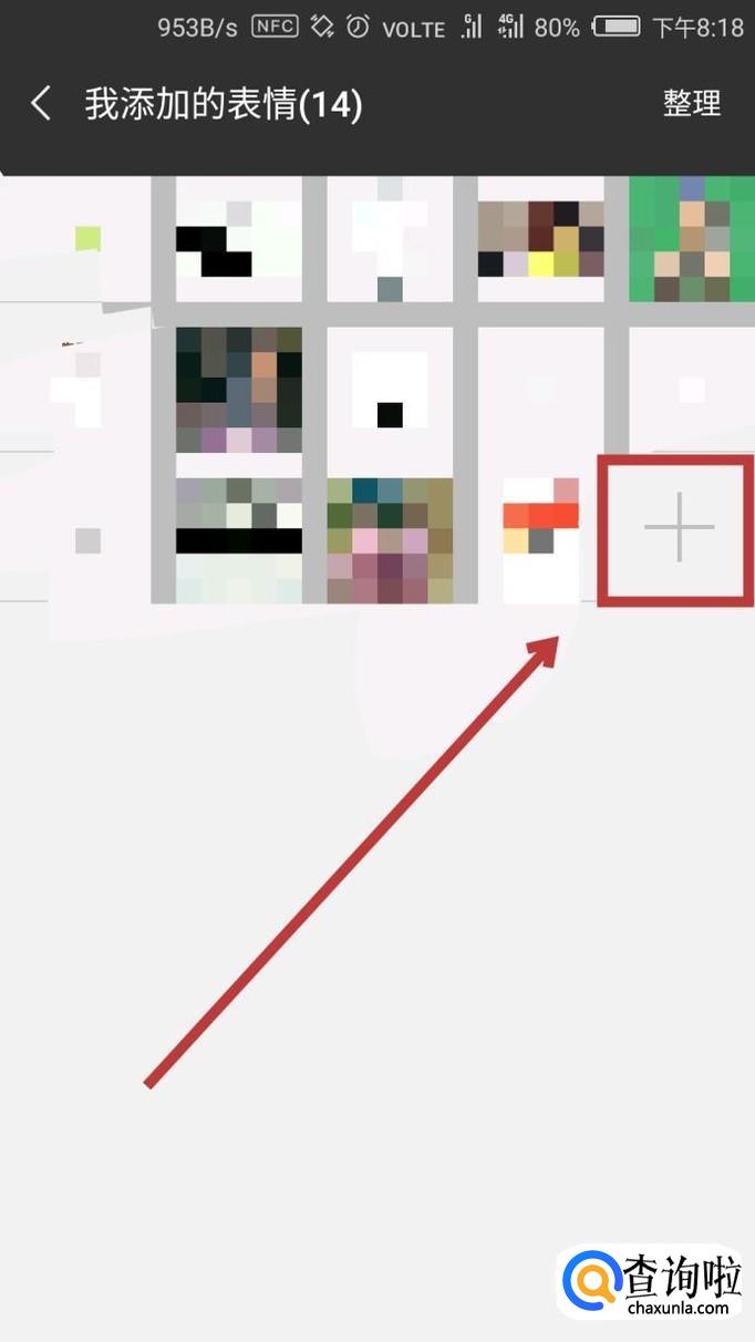 这样我们就到了【我添加的表情】里了,点击界面中的【+】,点击进入。