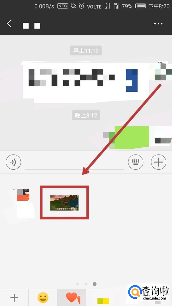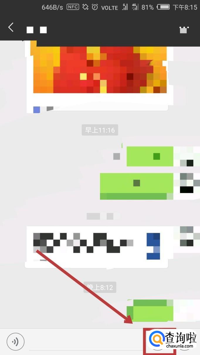 首先我们随意打开一个聊天框,点击界面下方的表情的图标,点击进入。