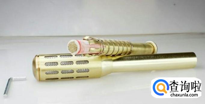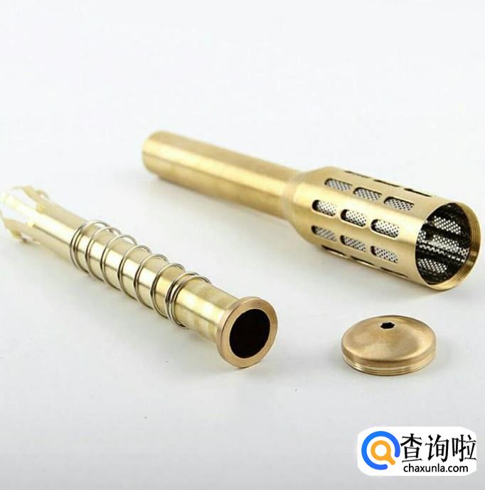 首先将铜制艾灸棒拿在手上,再将有弹簧的内筒从艾灸棒尾部取出,放在一旁备用。可以不用拆分艾灸棒顶盖。