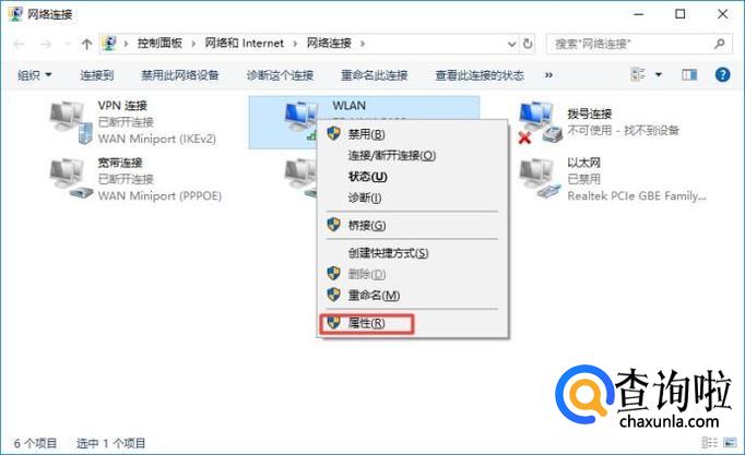 然后我们右击无线网络,弹出的界面,我们点击属性;