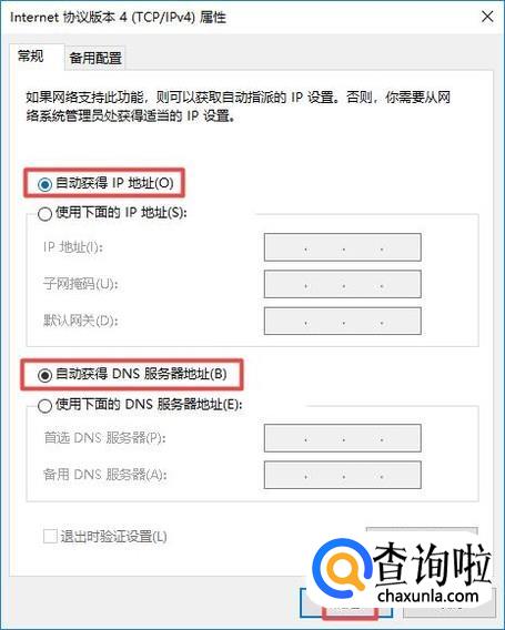 之后我们就需要进行设置了,我们如果没有固定的IP和DNS地址的话,就全部设置成自动获取的形式,之后我们点击确定就可以了。