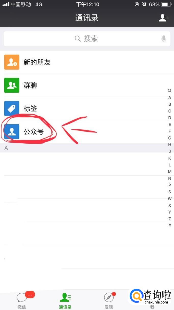 首先按图提示,打开微信并找到微信公众号