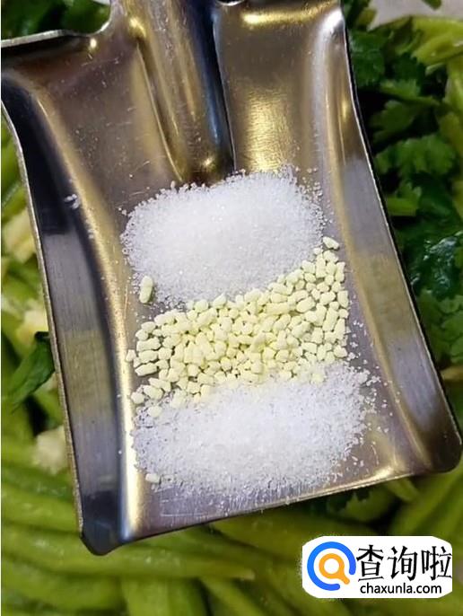 再加入一小勺的盐,一小勺鸡粉跟一小勺白糖。