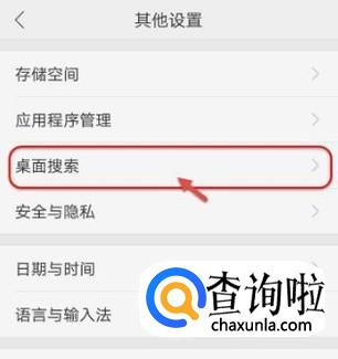 在“其他设置”界面,找到“桌面设置”点击并进入,如图所示。
