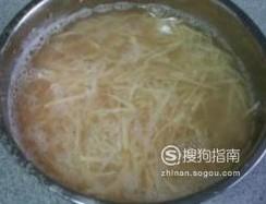 准备两个土豆,将土豆削皮洗净后切成细丝,放入装有水的大盆里,泡一会儿土豆丝炒出来更脆。