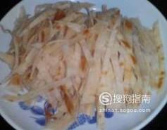 按照此方法烙出三四张饼,等饼冷却后,用菜刀将饼切成细丝备用。