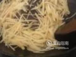 起锅烧油,油热后先放入土豆丝,大火炒制,因为饼是熟的,所以先放入土豆丝。等土豆丝炒熟后放入饼丝,加入一点盐,翻炒均匀就可以出锅了!