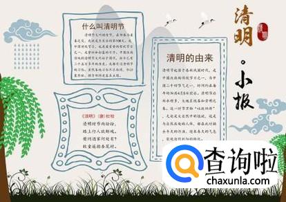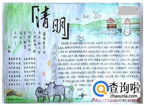 简单点就是这样,在边角画一点荷花啊,柳树啊,将大部分空间留来写字。比如介绍清明节啊什么什么的。